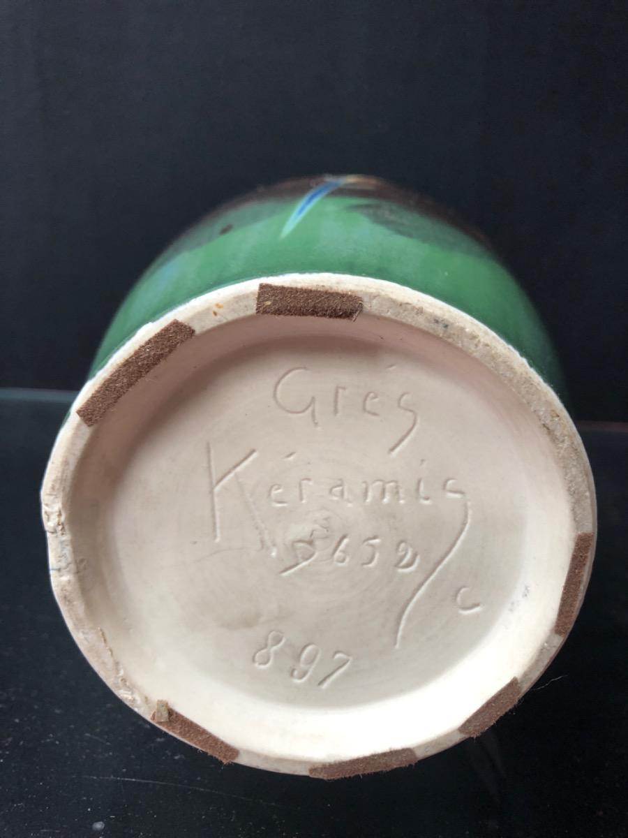 Grès Keramis Boch, décor feuillage sur fond brun, 26cm, ca 1920, ref d652 petite restauration sur base