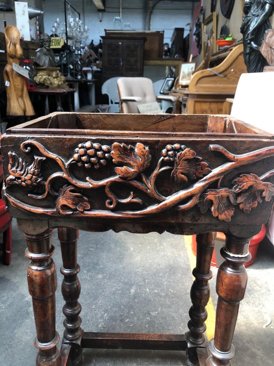 Jardinière en noyer à decor de cep de vignes , 18 eme, 80x40x29cm bel état de conservation