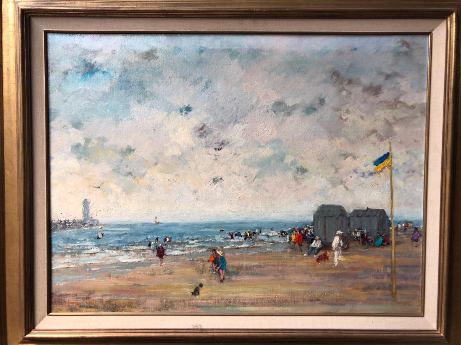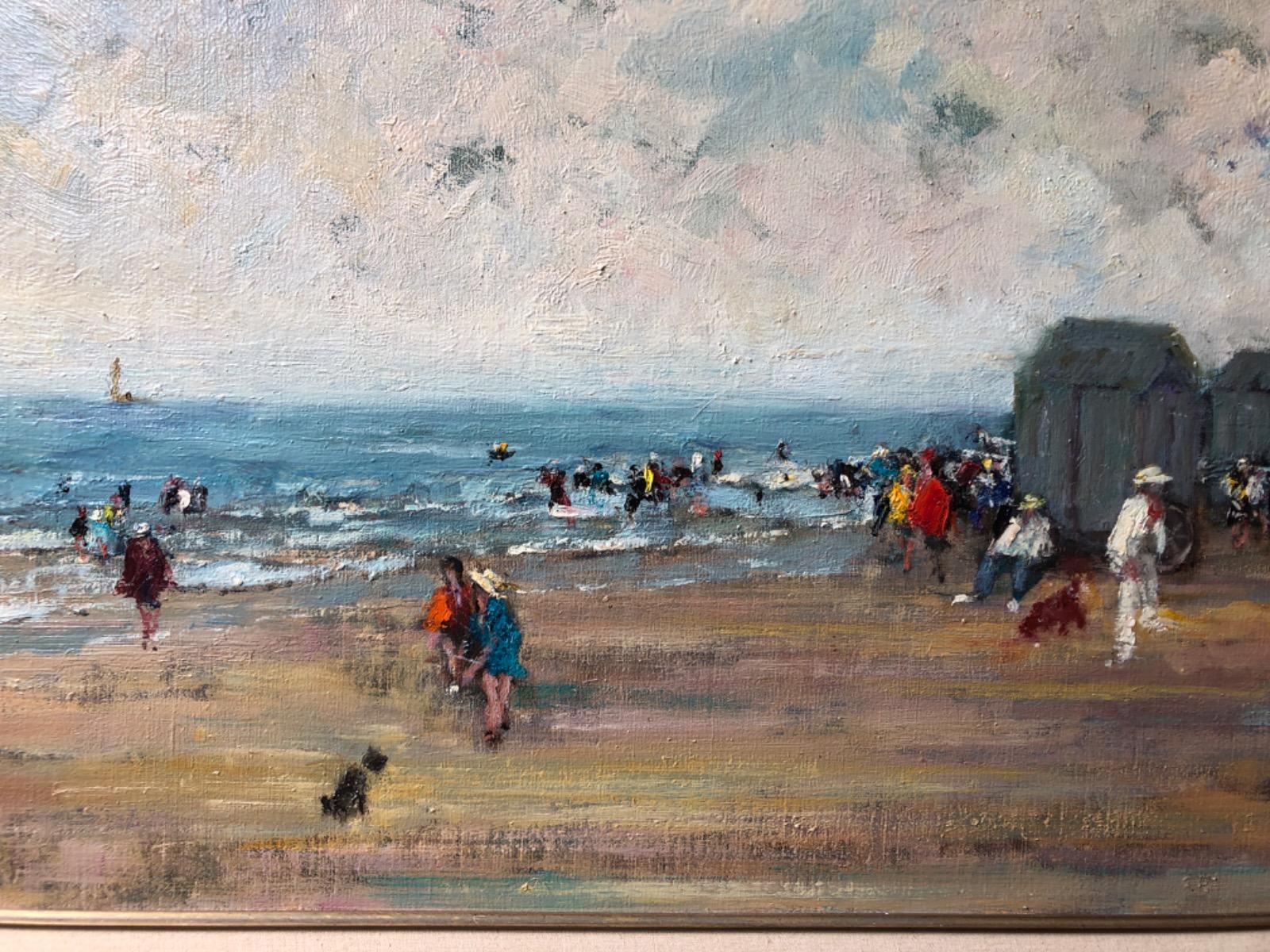 Maurice De Meyer, scène de plage en Normandie , huile sur toile, ca 1960, dim. 65x80cm, très bel état