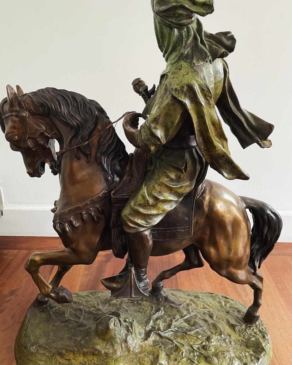 Antoine-Louis Barye, cavalier bédouin, grand bronze polychrome, signé sur sa base, ca 1900, dim: 69x56x29cm