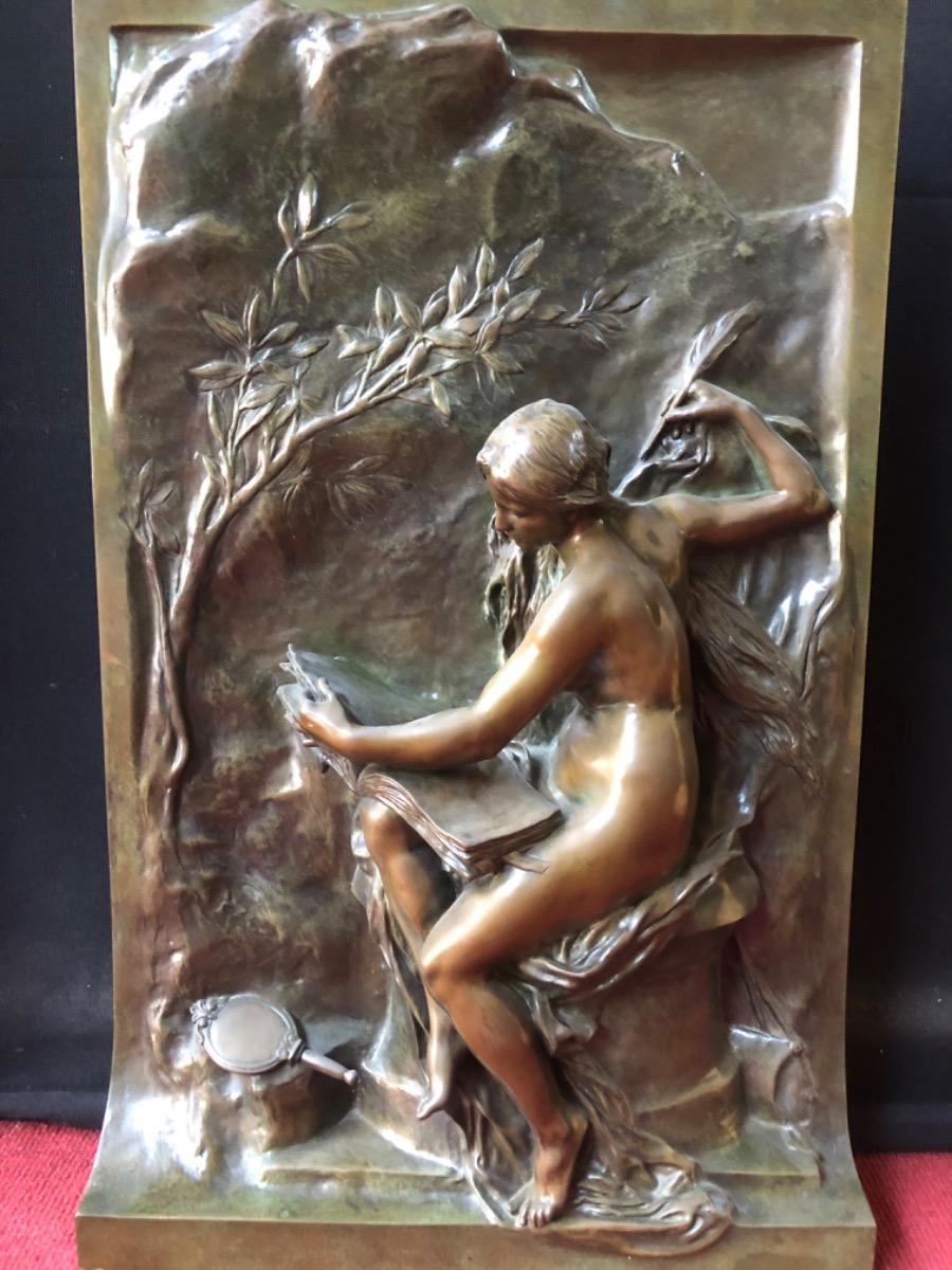 C.H. Chapu, plaque haut-relief en bronze, « La vérité » , ca 1890, cachet fondeur Thiebaud Frères, dim 62x45cm, très bel état