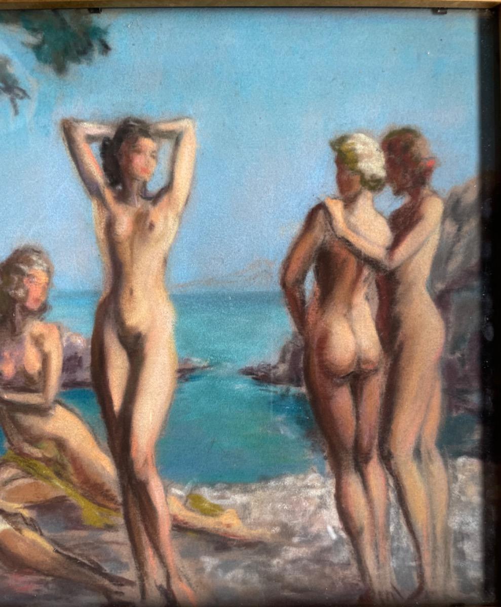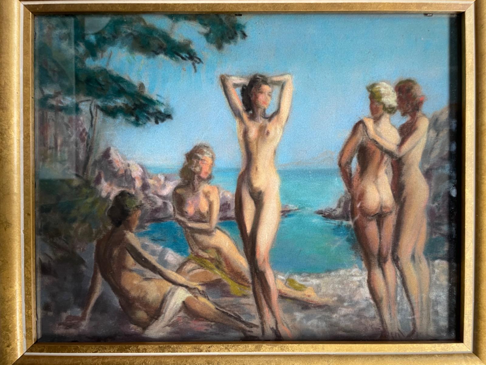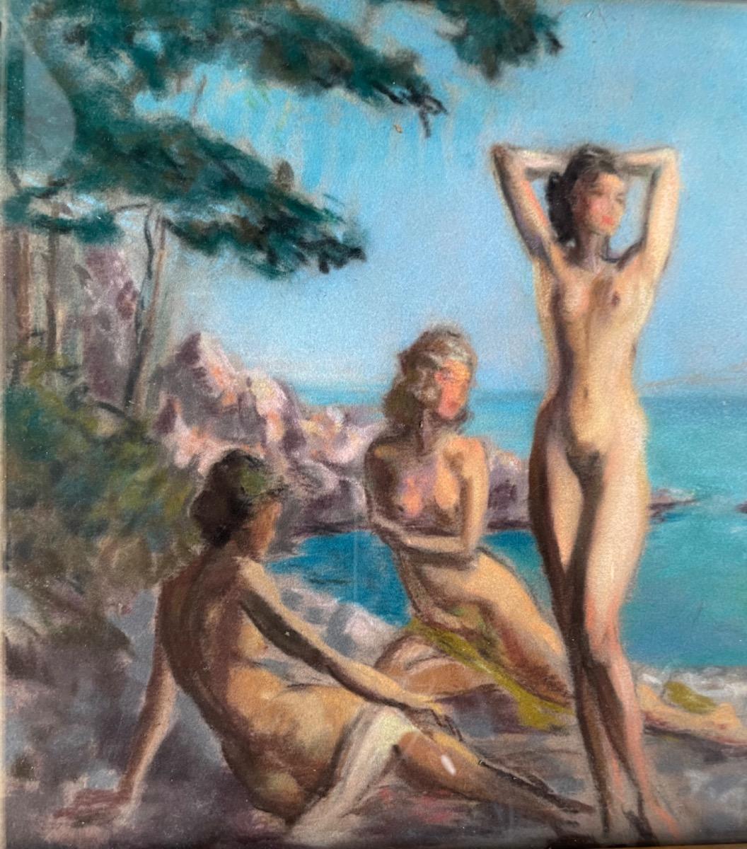 Raymond Van Doren, nus dans la calanque, pastel, circa 1950, dim 35x27cm