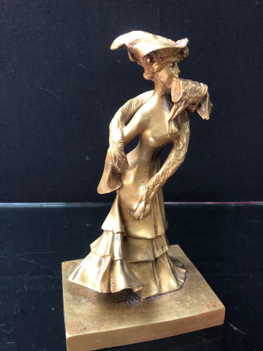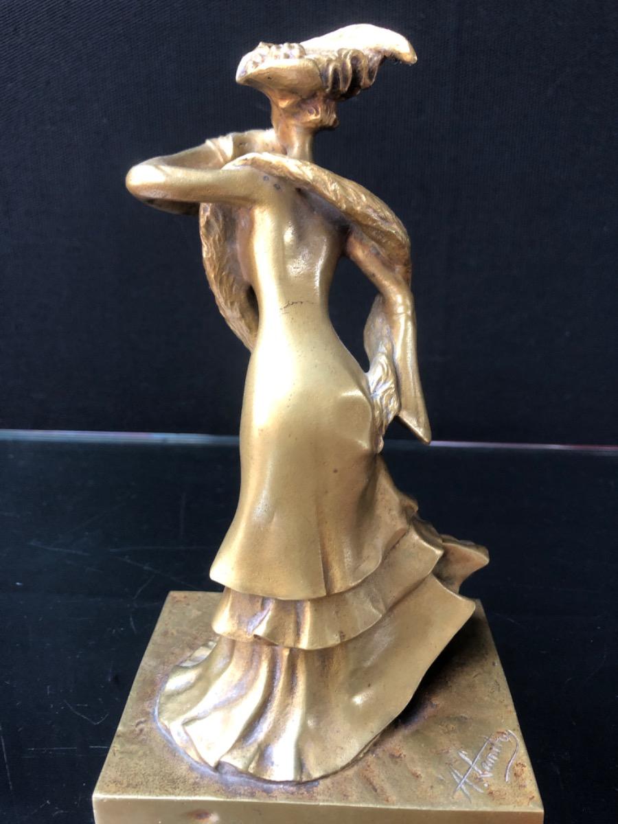 Sculpture en bronze « Elegante » Belle époque de Abel Landry patine mordorée H. 20 cm