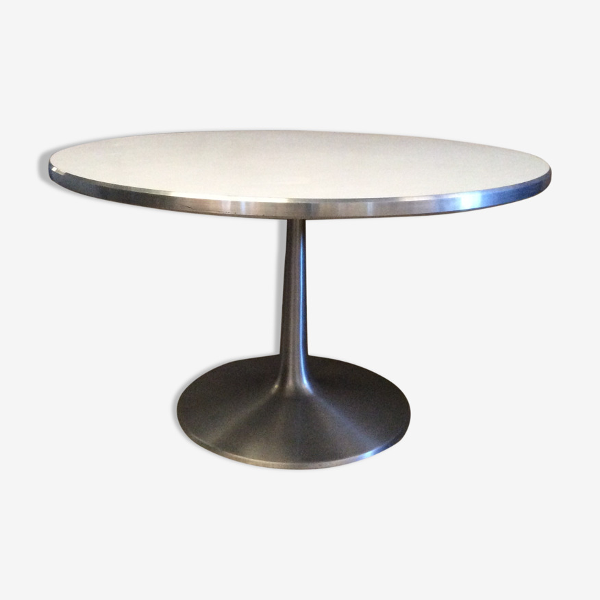 Table Poul Cadovius pour France & Son, aluminium et melaminé, ca 1960, diam. 120cm bel état