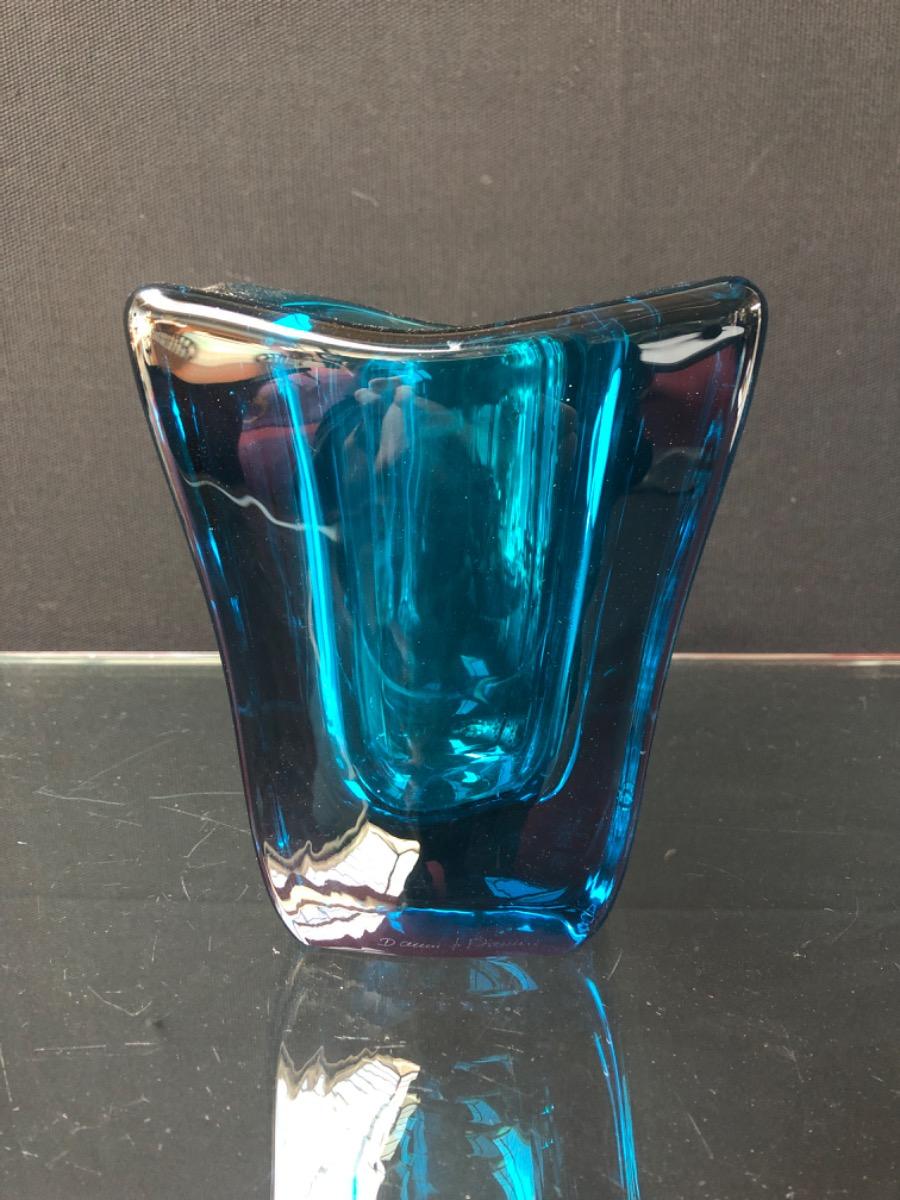 Tres beau vase en cristal DAUM couleur bleu 17cm signe sur sa base bel état
